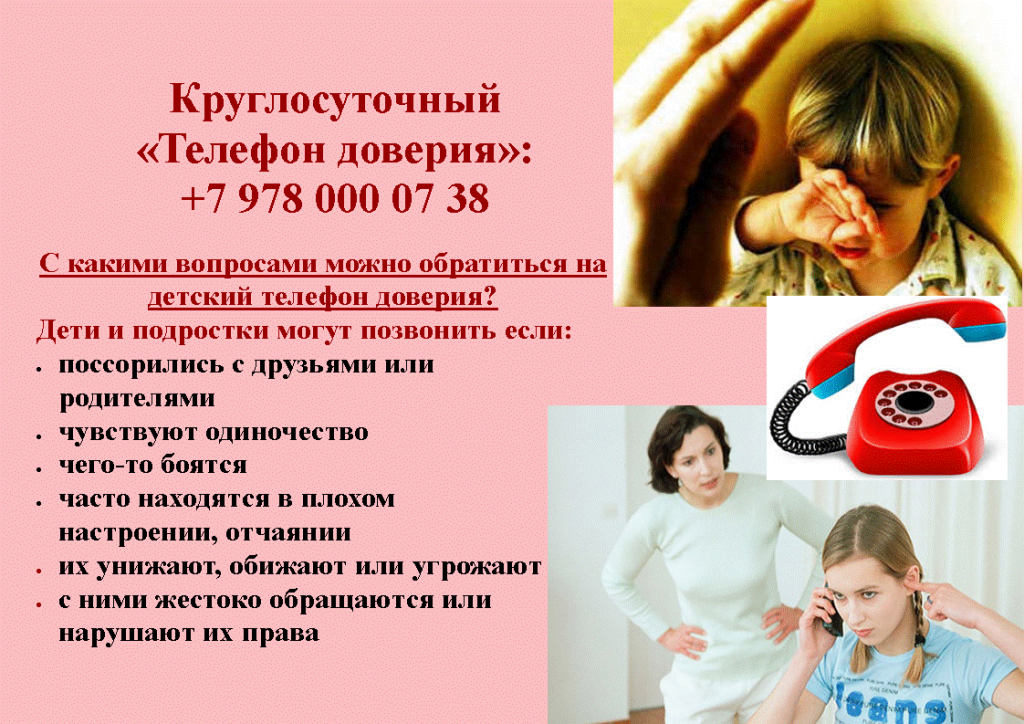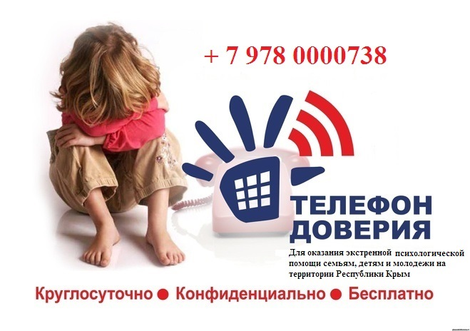 В Республике Крым работает детский телефон доверия Крымские дети могут теперь получить квалифицированную анонимную помощь психолога по единому телефону доверия. Звонок на номер доверия +79780000738 бесплатный и анонимный для жителей всего региона.
