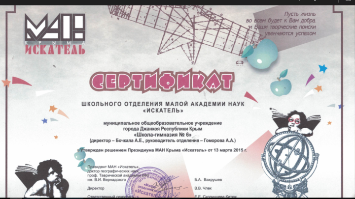 Муниципальное общеобразовательное учреждение города Джанкоя Республики Крым «Школа – гимназия «№6»