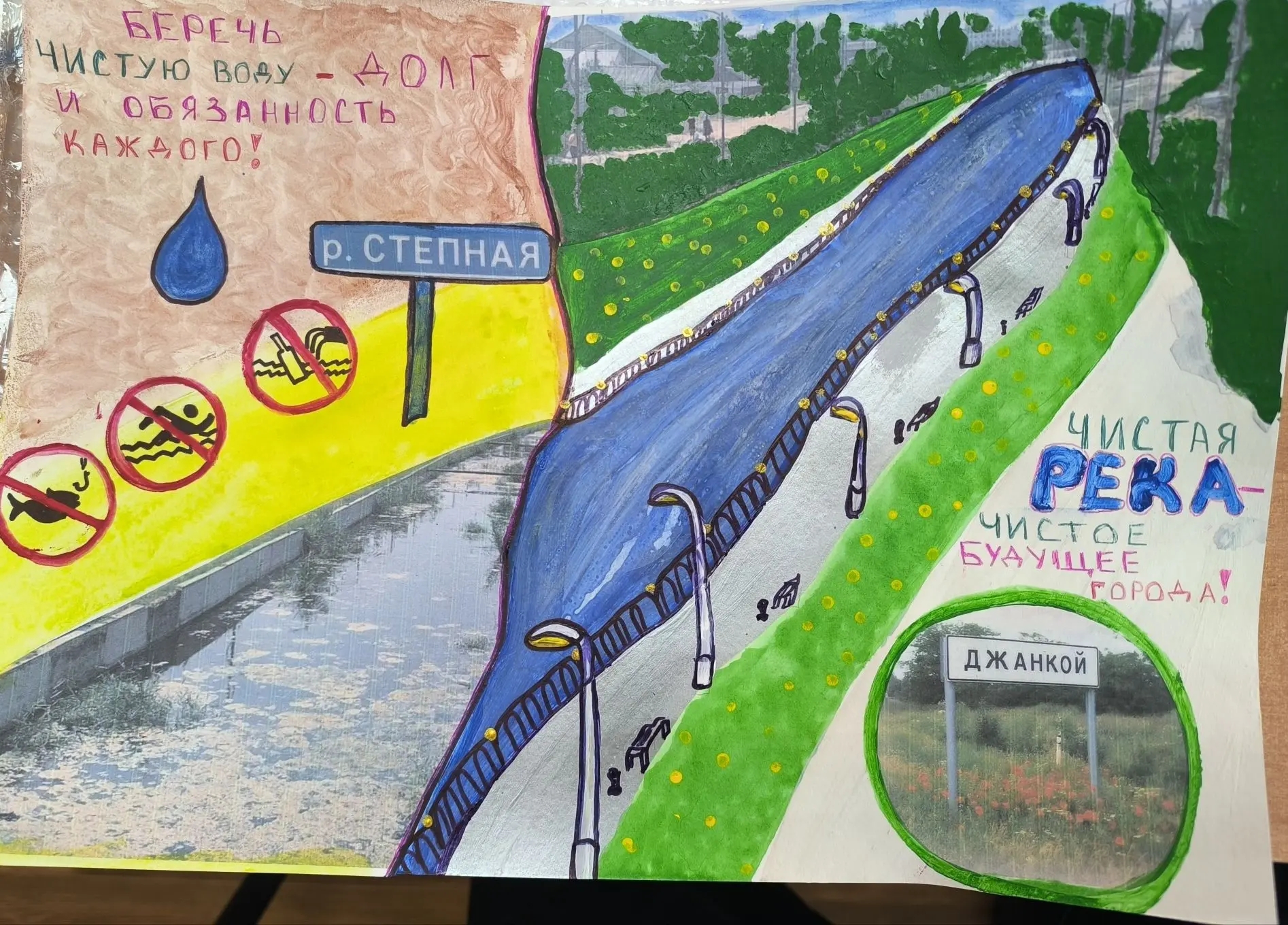 Не менее впечатляющей оказалась работа Асламазашвили Анны, ученицы 7-А класса. Ее рисунок "Сохраним водные ресурсы родного города Джанкоя!" – это призыв к действию, напоминание о ценности каждого глотка чистой воды и важности бережного отношения к водным богатствам нашего края. Анна продемонстрировала не только художественный талант, но и активную гражданскую позицию, неравнодушие к проблемам родного города. Ее труд был отмечен 2 местом!