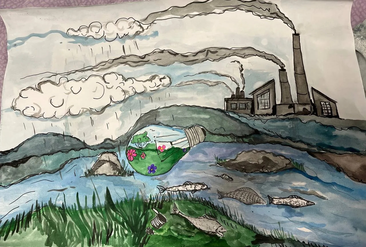 Чернова Полина, ученица 8-А класса, покорила жюри своим рисунком под названием "Мы жаждем прогресса, но готовы ли мы к его экологическим последствиям?". Эта работа - глубокое размышление о двойственности современного развития. Полина сумела наглядно и эмоционально передать сложность выбора между стремительным техническим прогрессом и его потенциальным негативным влиянием на окружающую среду. За свою смелость, глубину мысли и художественное мастерство Полина заслуженно заняла 1 место!